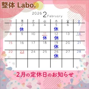 2月は木曜日のほか、2(月)と11(水祝)をお休みします🙇